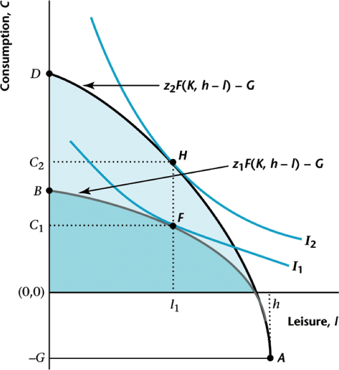 - Combined with $c + G = z f(k,h)$ and $\ell + h = 1$, we can fully determine the equilibrium