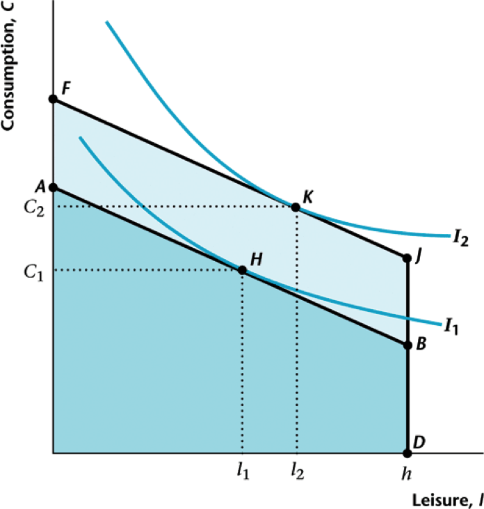 - Consumers spend a certain fraction of their time $h$ working at wage $w$, so wage income is $w \cdot h$