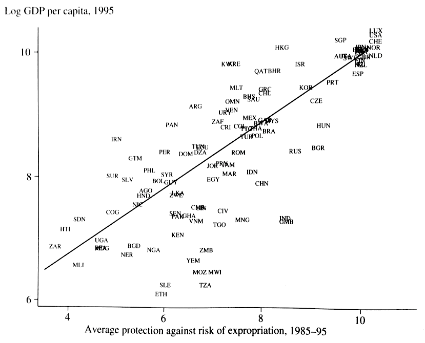 Institutions correlate with present day GDP