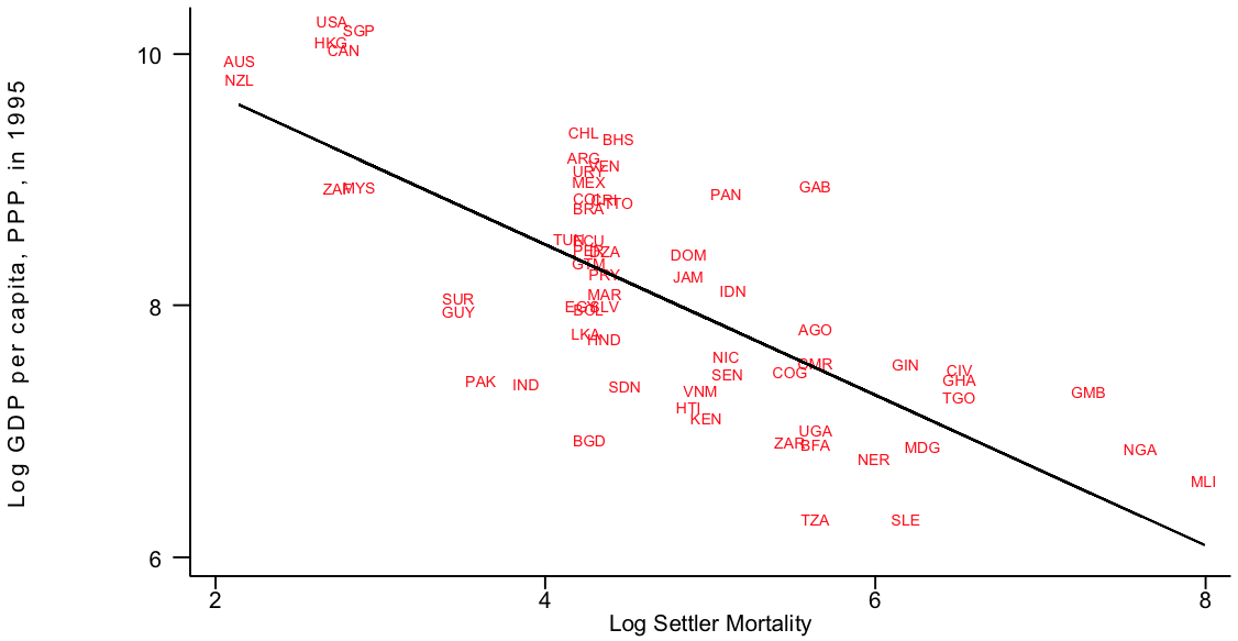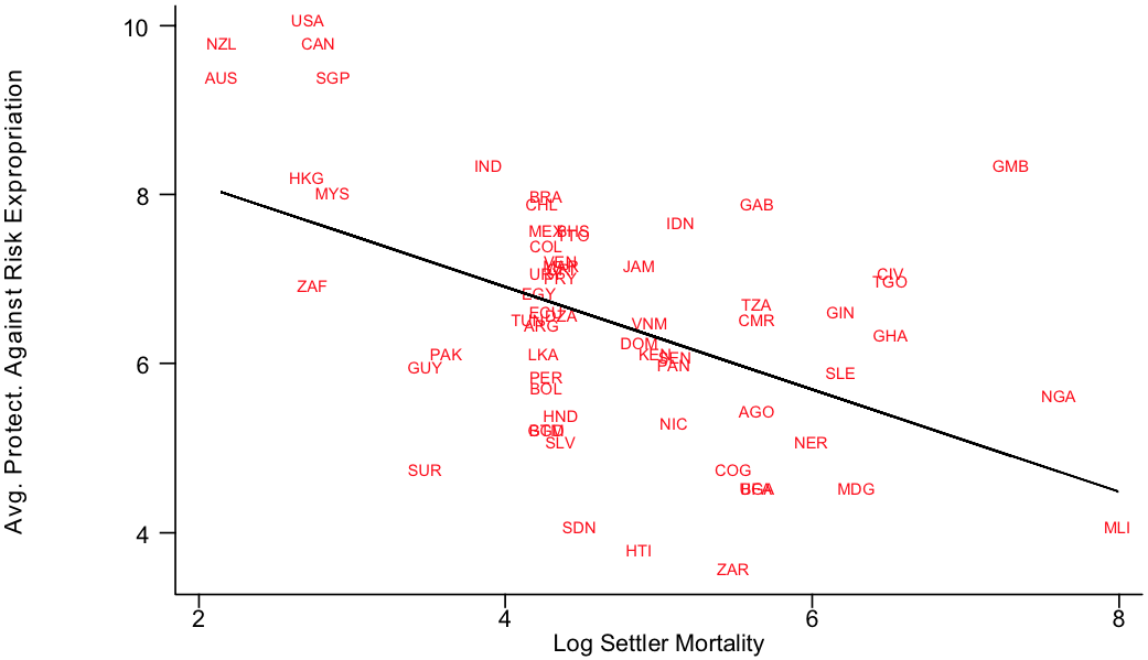 - We can tell the same story with settler mortality in colonies