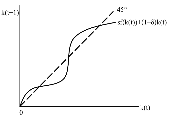 Three stationary points for capital! Only first and third are stable (robust to small perturbations)
