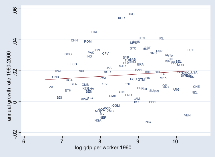 So Solow correctly predicts convergence for the rich "club" of countries, but fails otherwise (✗)