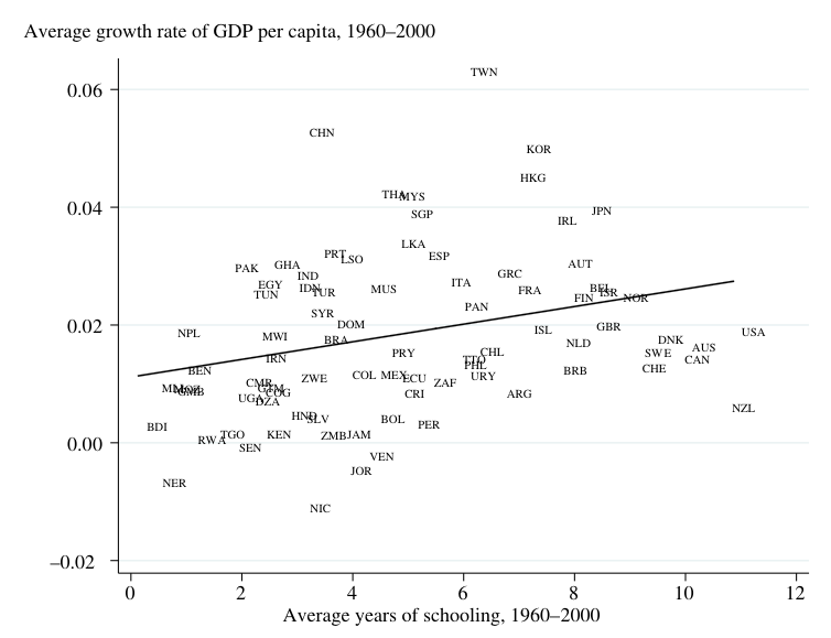 - We can run a regression of GDP growth on years of education